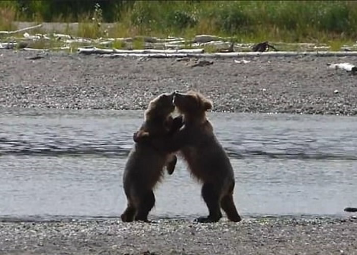 美国卡特迈国家公园和自然保护区两只幼熊岸边摔角 视频:美国卡特迈国家公园和自然保护区两只幼熊岸边摔角 近日网上流传一段两只幼熊于岸边摔角的片段,它们斗得难分难解,而两熊之母则在旁“懒洋洋”地观看,未有插手。 从片中可见,两熊揽作一团,左方幼熊在开始时稍占上风,双掌把右方幼熊压在下方。可是左方幼熊不久便见倦意,转身往河边似想喝水。但另一幼熊显然意犹未尽,亦步亦趋跟上到河边,再度作出挑衅,两熊又继续过招。片段最后,双方皆未能分出胜负。 拍摄者在此前亦曾发布多段与熊相关的片段,皆于美国卡特迈国家公园和自然保护区(Alaska's Katmai National Park)拍摄,而这次影片相信是发生于同一园区内。根据美国国家公园管理局的数据显示,公园内约有2200只棕熊在此栖息,是知名的观熊胜地。 (x-riddle收集整理) |