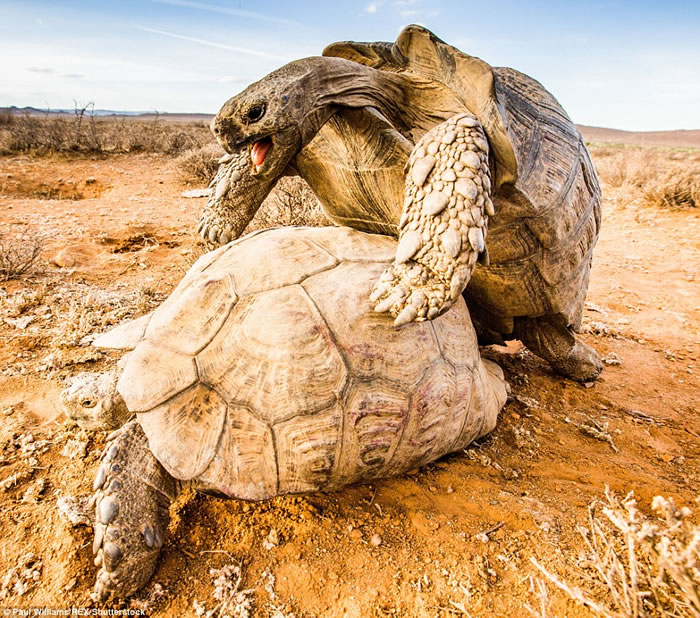 英国生态摄影师在南非拍摄到一对豹纹陆龟交配的珍贵画面 据ETtoday:陆龟虽然动作慢,但是雄性陆龟的威武雄风也是不输其他的动物。英国生态摄影师威廉斯(Paul Williams)日前在南非目睹一对南非豹纹陆龟(leopard tortoise)交配的珍贵画面,随即按下快门拍摄到最珍贵的一刻,大方的陆龟也在爱爱后滚泥地玩耍,丝毫不受影响场面恩爱温馨。 威廉斯自2002年开始为英国广播公司《BBC》拍摄野生动物,当时在南非莽原进行拍摄时,恰巧遇见一队豹纹陆龟交配中,雄性一方表情相当享受,但因为碍于身形限制,只能以一种方式进行,但有爱相伴,有时还会发出呼噜声;雌性则全程没有发出声音。 据悉,陆龟交配后会在数分钟内射精,雄性会慢慢离开雌性,如果受孕成功,可以孕育出约5~18颗蛋,小宝也会在88~163天之间破蛋出生。 (x-riddle收集整理) |
