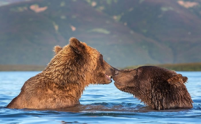 俄罗斯熊伴侣在摄影师镜头前大演亲密 俄罗斯业余摄影师近日到远东堪察加旅行期间,巧遇一对熊,只见它们在风景如画的湖边共享欢愉,不时头贴头,状甚亲热。 来自莫斯科的38岁业余摄影师华素夫(Egor Vlasov)指,它们先“跳舞”热身,并温柔地咬对方,然后跳入水中,继续拥抱,玩了大约一个小时。华素夫认为,两熊轻咬对方的举动就如人类亲吻。 (x-riddle收集整理) |