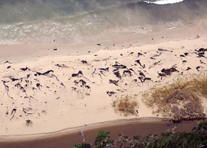 去年科学家在智利发现目前已知的最大规模单一鲸搁浅事件。(资料图片) 智利于1年内再发生鲸集体死亡事件,有渔民近日在智利南部偏远的巴塔哥尼亚(Patagonian)一个海滩上,发现多达70条鲸尸体。专家会在稍后到事发现场调查鲸的死因,研究是否涉及人为因素。 今次是自去年12月,337条鲸搁浅以来,再次发生的同类型鲸集体死亡事件。当地渔业部门的官员指,今次死亡的鲸有别于上次,它们的体型较小,暂时未知它们的确实品种,但相信它们死去至少有两个月。当局稍后会派专家到事发现场调查,又会对鲸的尸体进行解剖,希望查证鲸的死因。 去年12月,科学家在智利发现目前已知的最大规模单一鲸搁浅事件。当时的鲸尸体腐烂严重,所以未能以解剖验尸去确实它们的死因,但相信它们是死于红潮。 (x-riddle收集整理) |
