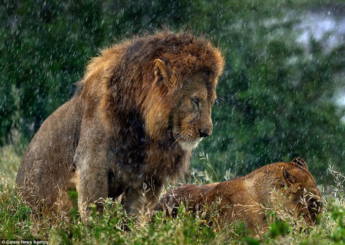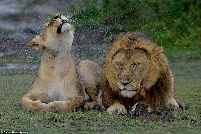 非洲坦桑尼亚雄狮狂甩鬃毛弄湿雌狮 据环球网(实习编译:李智):英国《每日邮报》12月29日报道,一名摄影师在非洲坦桑尼亚一个自然保护区内偶然拍摄到一对狮子情侣的有趣瞬间:雄狮忽视身旁的雌狮,猛甩鬃毛,溅得雌狮一脸水。 这组有趣的图片拍摄于2015年3月,正值坦桑尼亚的雨季。大雨过后,这对狮子情侣安静地卧在草坪上,享受美好的时光。哪知,不懂怜香惜玉的雄狮突然狂甩脖子上的鬃毛,水珠溅到身旁雌狮的脸上。雌狮不甘示弱,也狂甩脑袋,企图报复雄狮,不过毕竟雌雄有别,它不及雄狮的威力大。 (x-riddle收集整理) |