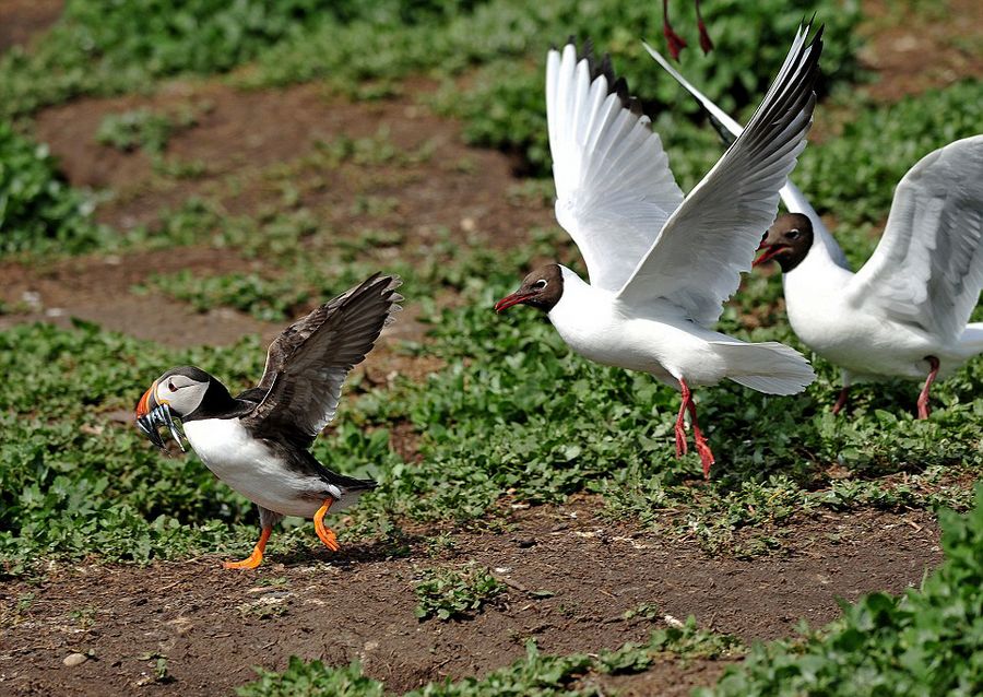 英国诺森伯兰郡海岸海鸥偷抢角嘴海雀的猎物 据环球网(实习编译:肖达明):英国《每日邮报》7月30日报道,近日,英国男子比尔•多尔蒂(Bill Doherty)在英国诺森伯兰郡的一处海岸上拍到的一系列海鸥偷抢其他海鸟猎物的照片受到广泛关注。日渐升温的海鸥抢夺事件的受害者名单上又添一位——角嘴海雀。 这些精彩的照片显示,一群栖息在海岸边的小海雀们正在等着父亲从北海带着食物飞回。然而让它们始料未及的是,素以强盗之名“闻名”英格兰的海鸥这次把犯罪目标锁定在了它们的父亲身上。从北海飞回,嘴里叼满了鱼的大海雀在半空中突遭海鸥奇袭,只见一只黑头海鸥半路杀出,锋利的鸟喙直朝海雀嘴里的玉筋鱼而去。 袭击完大海雀后还嫌不够,这只海鸥还落在沙地上,从小海雀的嘴中明目张胆地抢鱼。种种行径十分不堪,让英格兰人们对于海鸥的怒火再次燃烧。 比尔表示,他观察这片海岸已经长达13年,近年来,海鸥的数量急剧增加,给周围的生态系统带来不小的影响。 (x-riddle收集整理) |
