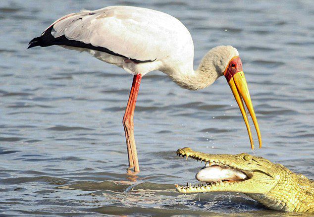 坦桑尼亚塞卢斯禁猎区鳄鱼强抢鹳嘴里的半个鱼头 据环球网(实习编译:李智):英国《每日邮报》7月16日报道,近日,在非洲坦桑尼亚塞卢斯禁猎区,一条4米长的鳄鱼张着血盆大口,强抢鹳嘴里的半个鱼头,结果鹳在险境中逃生。 拍摄者讲,当时他看到一只鹳衔着半个虎鱼头在浅水区嬉闹,不想此举动吸引来了一条鳄鱼。鳄鱼张开血盆大口,以迅雷不及掩耳之势夺食了鹳嘴里的虎鱼头。当时,鹳的半个身子都陷入了鳄鱼的大嘴里。幸好只是虚惊一场,鳄鱼巧妙地避开了它的头,放了它一条生路。 据悉,鹳经常在鳄鱼活动的区域觅食,因为鳄鱼身形硕大,它移动的时候就能惊动周围的小鱼。此时,鹳就能浑水摸鱼了。这就是被外界公认的“双胞胎狩猎策略”。 (x-riddle收集整理) |