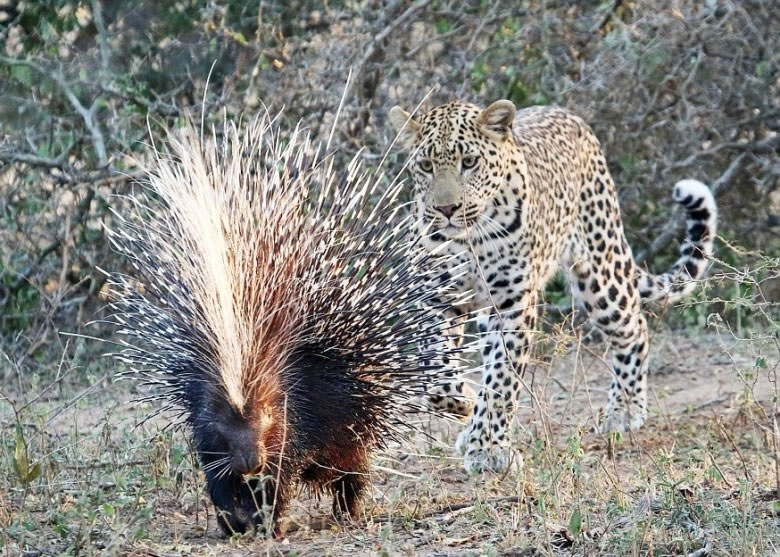 箭猪其后亦离开这个危险之地 南非摄影师埃克(Wolfie van Eck)本月13日,在克鲁格国家公园捕捉到趣怪的一幕。一只饥饿花豹悄悄跟踪一只箭猪,显然想要开餐。其后花豹走近猎物,箭猪选择以静制动。心急的花豹伸出爪子试试水温,然而箭猪混身是刺,最终花豹唯有缩手,无奈离去。 (x-riddle收集整理) |
