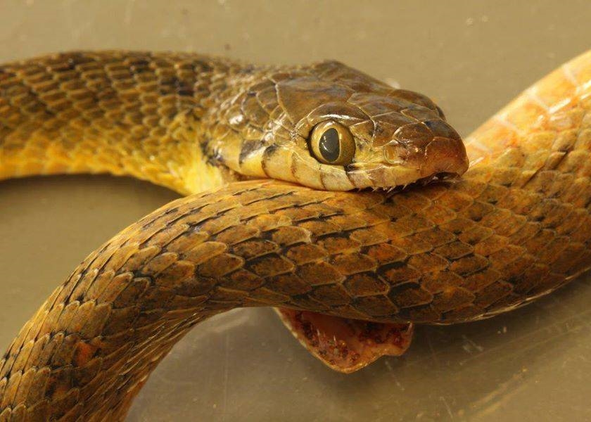澳洲棕树蛇疑自杀 被自己的毒液“毒死”