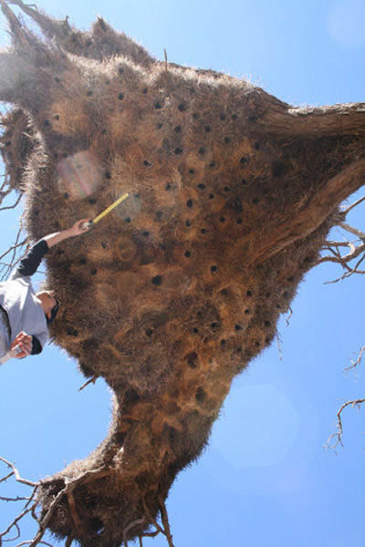 织巢鸟在树上构筑起巨大的巢穴,有时候看上去巢穴甚至完全盖过了树本身
