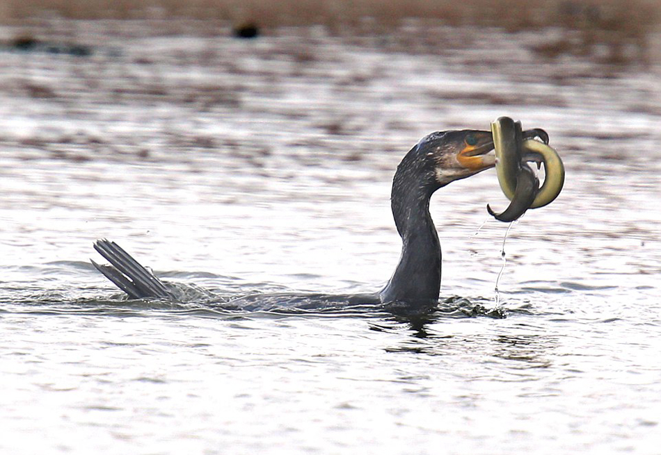 英国一只鸬鹚捕食鳗鱼反被缠住嘴巴 据环球网(实习编译:李娅凤):英国《每日邮报》7月28日刊登了一组照片,展示了湖水中一只鸬鹚和一条鳗鱼展开生死较量的画面。 这场较量发生在英国多赛特郡阿伯茨伯里的一片泻湖里。照片中,鸬鹚把鳗鱼高高地抛起,想像它以前吞食其他鱼一样把鳗鱼一口吞下,但这次跟它想象的不一样,它必须要通过更多努力才能迟到这份午餐。鳗鱼拼命挣扎着、扭动着,并死死缠住鸬鹚嘴巴,让鸬鹚干着急。 这场在鸬鹚和鳗鱼之间展开搏斗时间长达5分钟,最终,强大的鸬鹚取得了胜利,并一口吞下了鳗鱼。 (x-riddle收集整理) |