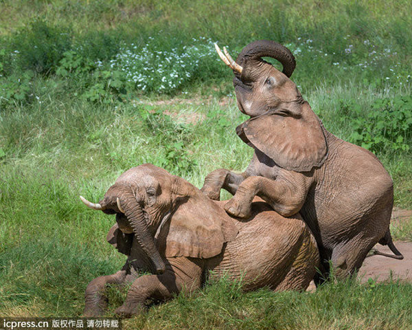 哦哦!原来你还活着!(东方IC) 据ETtoday:一头严肃的大象成为恶作剧的受害者──它慢慢接近朋友的「遗体」,再把前脚轻轻碰触「死者」身上,哪知道侧躺的朋友突然跳起来,两头大象又开始玩闹。 这爆笑的一幕由54岁的摄影师Ali Khataw拍摄,他说当时简直不敢相信自己的眼睛!此事发生在肯亚的桑布鲁国家保护区(The Samburu National Reserve)。 (x-riddle收集整理) |