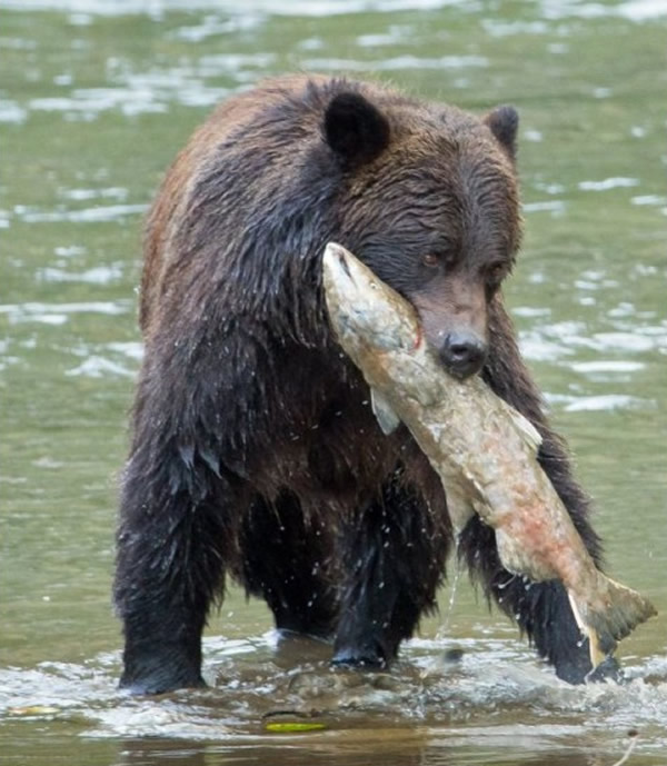 休息完毕后,幼熊即叼到一条大三文鱼。 ()据香港媒体东网报道,美国亚利桑那州摄影师帕特与乔治(Pat and George Walsh),早前到加拿大卑诗省看到一只为吃鱼,不惜走到水中的幼熊。 在遍叼无所获的情况下,该头幼熊揽着水中的浮木休息,并于其后叉足电的情况下,即时叼到一条大三文鱼,而这有趣一幕亦被帕特与乔治拍下。 (x-riddle收集整理) |