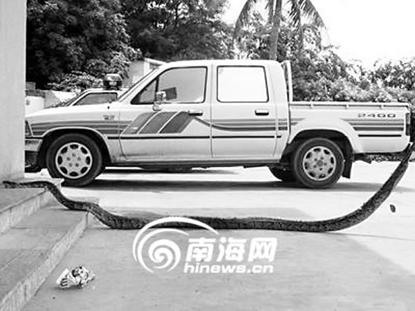 在2006年8月4日,因工地施工,三亚大东海一土山上的蟒蛇窝今天被挖土机挖开,2条蟒蛇险些成为附近工人的盘中餐,幸亏被一家美食广场的厨师及时救下。 发现蟒蛇的地点在靠近海边的一个土山上,土山上长满了杂草,一台挖土机正在土山下现场施工,据介绍这里准备建一个酒店。而三亚大东海椰城美食广场正好位于土山的隔壁。一名员工带着记者来到一个巨大的红塑料筐里,打开盖子后一条碗口粗的蟒蛇立即“游”了出来,这个蟒蛇看起来有3米多长,浑身都在褪皮,不时张开嘴做出咬人的架势,吓得一些女员工惊叫不已。 美食广场的厨师谢冠平向记者介绍说,中午11点多钟,他来到门外看旁边的挖土机施工,突然看到一条几米长的蟒蛇在挖土机旁边蠕动,估计是挖土机把蟒蛇的窝挖掉了,蟒蛇回不了家了,于是急忙招呼其他厨师和服务员赶到土山前。他抓住了这条蟒蛇,带回美食广场,并拨打了“110”报警电话。 谢冠平说,工地上的工人看到这条蟒蛇后,要求把蟒蛇交给他们,声称要把这条蟒蛇带回去吃掉,他坚决不同意。不大一会,当地派出所的干警赶了过来,那些要吃蟒蛇的人才走开。 不一会,三亚市野生动植物保护站的人员也来到了美食广场,旁边的工地上又有人在叫喊,原来又有一条差不多大的蟒蛇在土堆上游走,而几名群众正拿着铁锨、麻袋准备抓蟒蛇,美食广场的工作人员急忙上前制止,并把发现的第二条蟒蛇带回店里。经秤量,每条蟒蛇都有30多斤重。这两条蟒蛇全部交给了野生动植物保护站的工作人员。 三亚市野生动植物保护站的工作人员告诉记者,这两条蟒蛇应该是一公一母,是一对的,都属于国家二级保护动物,是禁止捕杀的。他们准备把蛇拿到位于三亚甘什岭的野生动物保护中心进行放生。 后续