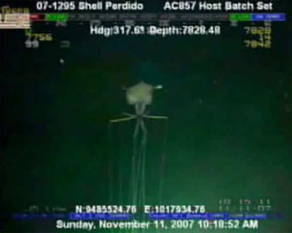 2007年11月,壳牌公司远程水下设备ROV在墨西哥湾海底2377米深处探测到一只长臂乌贼