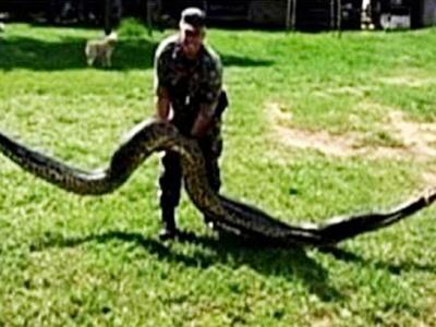 [动物之迷] 巴西一条长约7米不断偷吃居民家畜的巨型水蟒被当地士兵捉走 日期:2008-06-12 20:28:09 点击:416