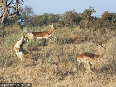 非洲博茨瓦纳狩猎的母狮被猎物黑斑羚飞踢一腿出丑(图片:CFP)[迷记录 插图]据ETtoday:非洲博茨瓦纳的奥卡万戈三角洲(the Okavango Delta),狩猎的母狮与猎物黑斑羚仿佛演出了...