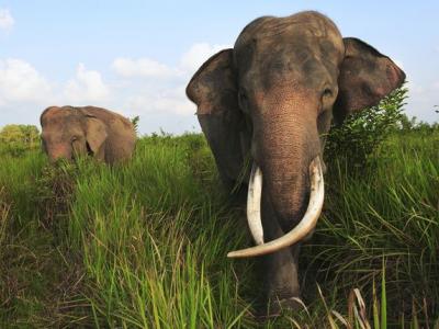 印尼苏门答腊岛,威坎巴斯国家公园(Way Kambas National Park)的亚洲象。[迷记录 插图]据美国国家地理:如果有一头身为女大家长的老非洲象听见稀树草原上传来狮吼,她会侧耳倾...