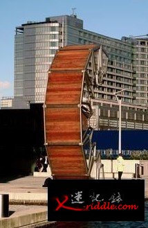 【伦敦会演杂技的桥】 拜别吊桥吧!在伦敦,12米长的滚桥蜷起一边,来往船只就可以自由穿越帕丁顿盆地的大联盟运河。“八截钢材和木材铰链部分都要卷起来,形成八角状,直至桥两头碰到一起。” 来自比利时名叫 Koen Kas的承包商说,“每周五中午,这座滚桥都要给慕名而来的人们表演杂技。” x-riddle.com |
