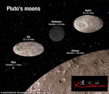 图中是冥王星5颗卫星的模拟图,最新研究显示,这5颗卫星处于混乱翻滚状态。 目前,天文学家最新研究揭晓冥王星几颗卫星的详细结构,发现它们混乱旋转,并具有奇特的表面成分。这项研究是由美国马里兰大学负责的,检测了冥卫一与其它4颗较小卫星之间的交互关系。 天文学家使用哈勃太空望远镜发现冥王星形成的引力场持续作用于卫星,使它们以不可预知的方式翻滚。这种效应被冥王星卫星的“土豆”不规则外型放大,这些卫星以一种混乱方式翻滚和旋转,研究小组发现其它几颗卫星在冥王星和冥卫一周围遵循着一个可预测轨道运行。 其中冥卫二、冥卫五和冥卫三以“共振”形式锁定在一起,这意味着它们的轨道非常像发条结构。这种效应也存在于木星的三颗卫星——木卫三、木卫二和木卫一。研究报告合著作者、马里兰大学天文学教授汉密尔顿博士称,冥卫二、冥卫五和冥卫三之间的共振关系使它们的轨道更加有规律,具有可预测性,这也是为什么体积较小的冥王星拥有许多卫星的一个原因。
