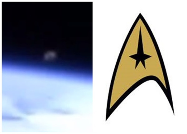 部分网民认为,这不明物体外型有点像星际舰队徽章(右)。
