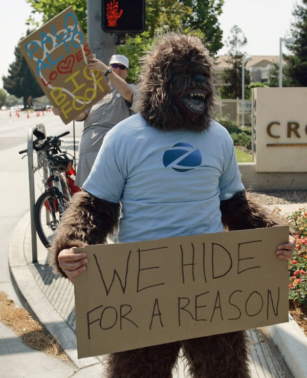 2008年据报在美国乔治亚州发现大脚雪人尸体,公布记者会外有人扮成人猿做宣传。